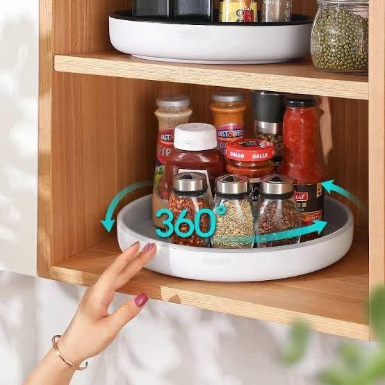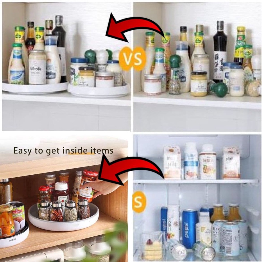 منظم تخزين دوار متعدد الوظائف - لتنظيم المطبخ، الثلاجة، والحمام. بيلف 360 درجة، خامة متينة، وبيوفر المساحة ويخلصك من الكركبة. عملي وسهل الاستخدام!